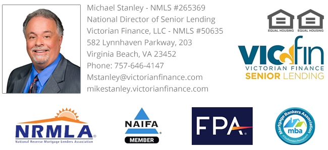 National Director of Senior Lending for Victorian Finance, LLC, Virginia Beach. I have knowledge of all aspects of Mortgages, FHA, VA, 203K, Fannie Mae Home Path, and others. However, my extensive experience is working in the Reverse Mortgage Purchase and Refinance field. This allows me the ability to deal with my real passion, Home Equity Conversion Mortgages for Senior’s / Baby Boomers.