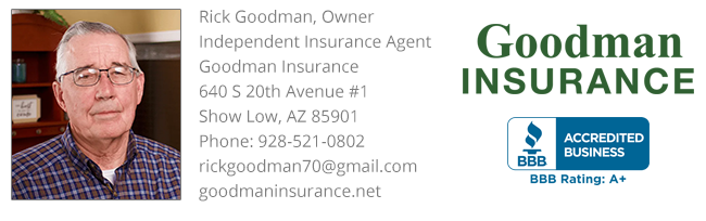 With over two decades of experience in the insurance industry and deep roots in the Show Low community, Rick Goodman is your trusted, independent insurance agent. As the owner of Goodman Insurance, he has been dedicated to helping clients in rural Arizona and beyond since 2008.